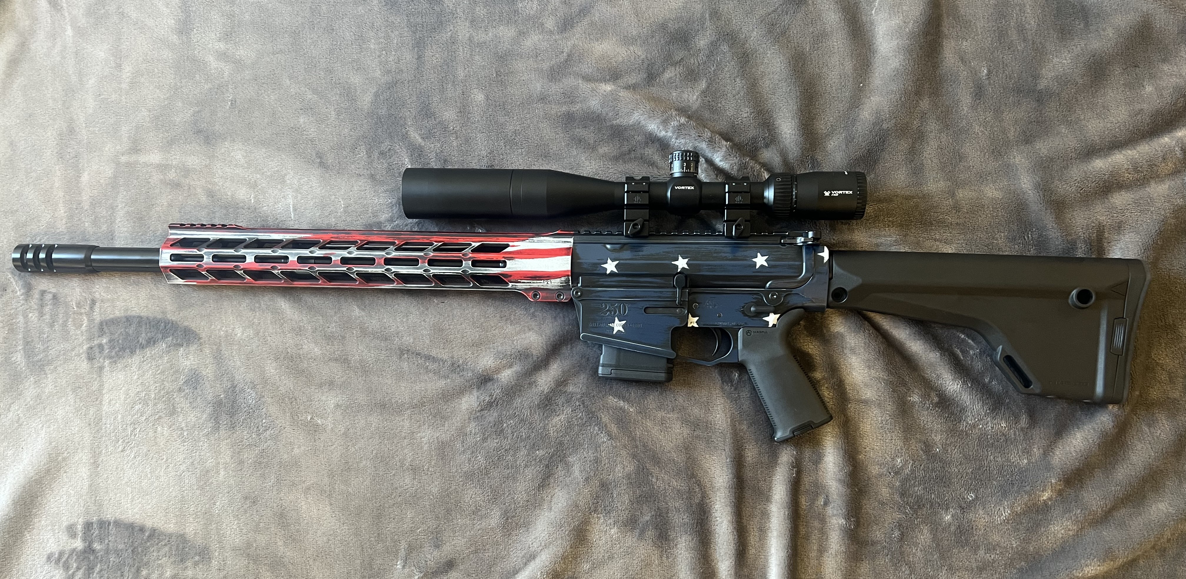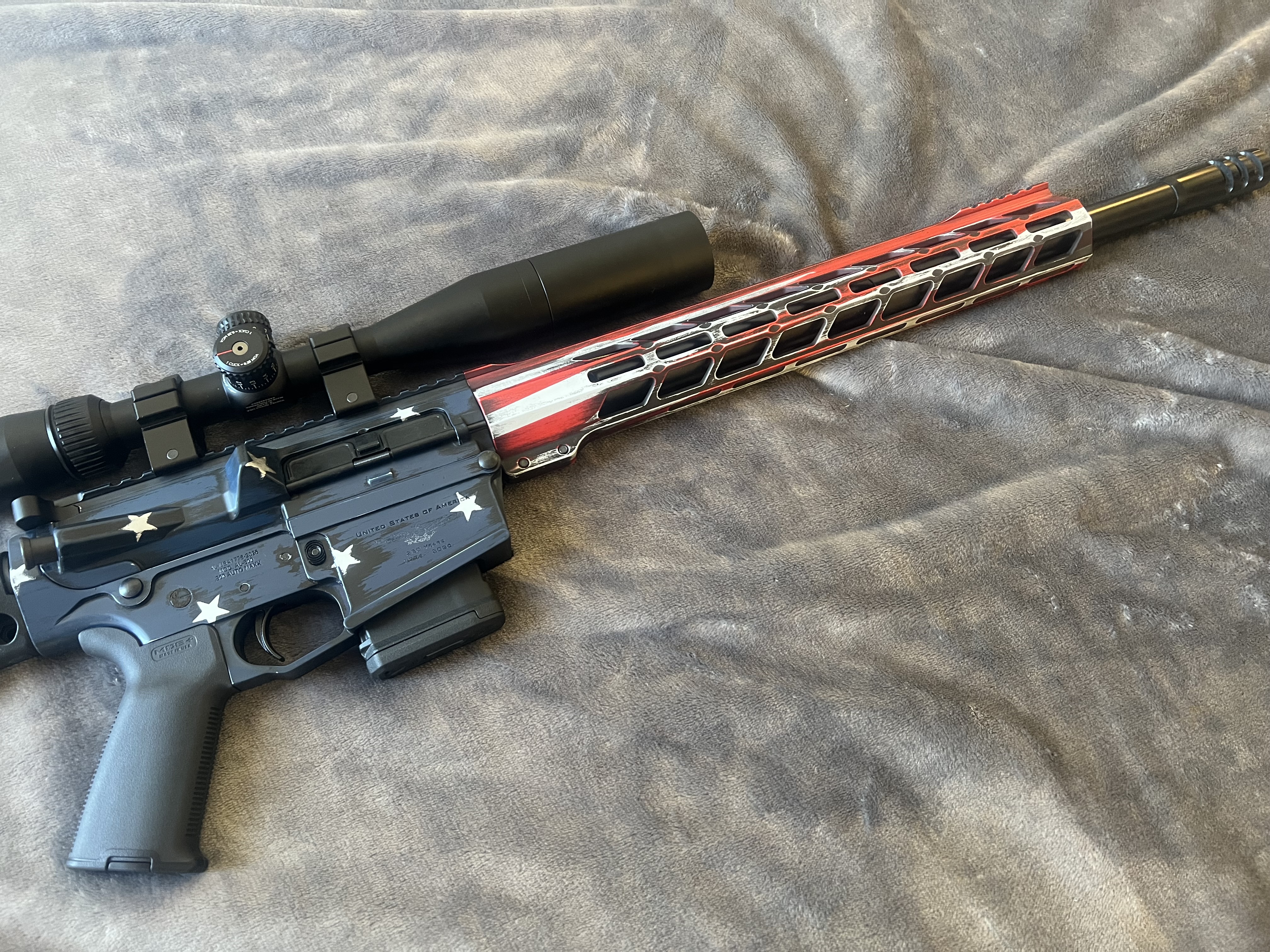 Each rifle is hand fitted, built with attention to detail, and test fired. Upper and lower receivers and handguard are all finished in Cerakote with several colors to choose from. See the Firearms page for a complete description.